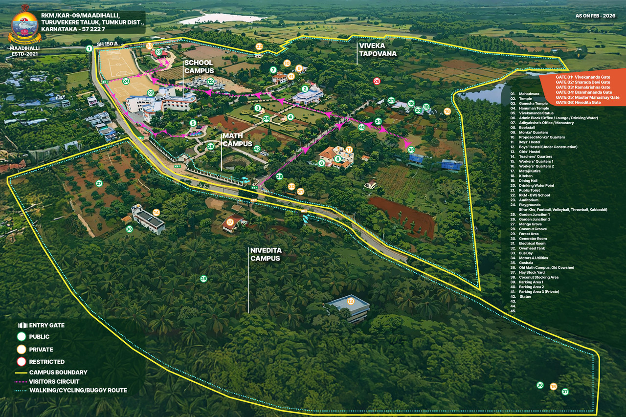 Spread across a serene natural landscape, Ramakrishna Math, Maadihalli is designed as a harmonious space for spiritual practice, education, and service.